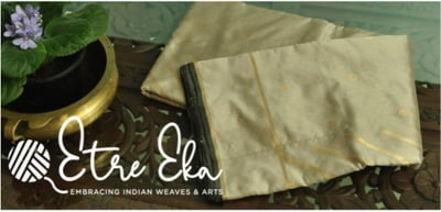 Chanderi Pure Handwoven Soft Silk Saree -White Saree with Golden Zari Border and Multi Color Woven Jaal Design