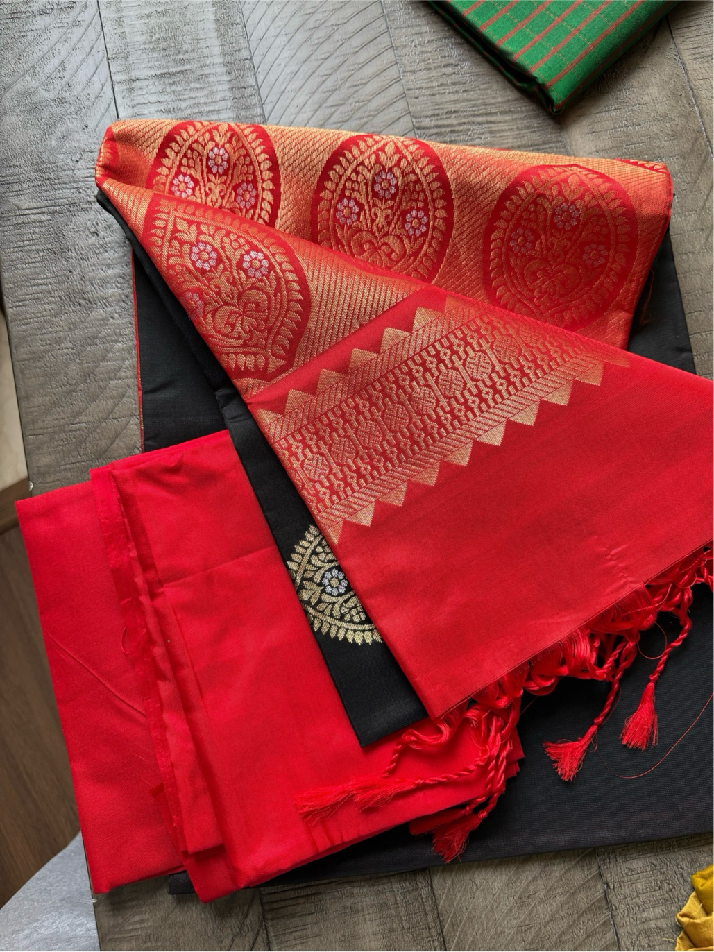 Black and Red Pure Soft Silk Saree with Zari Motifs