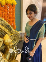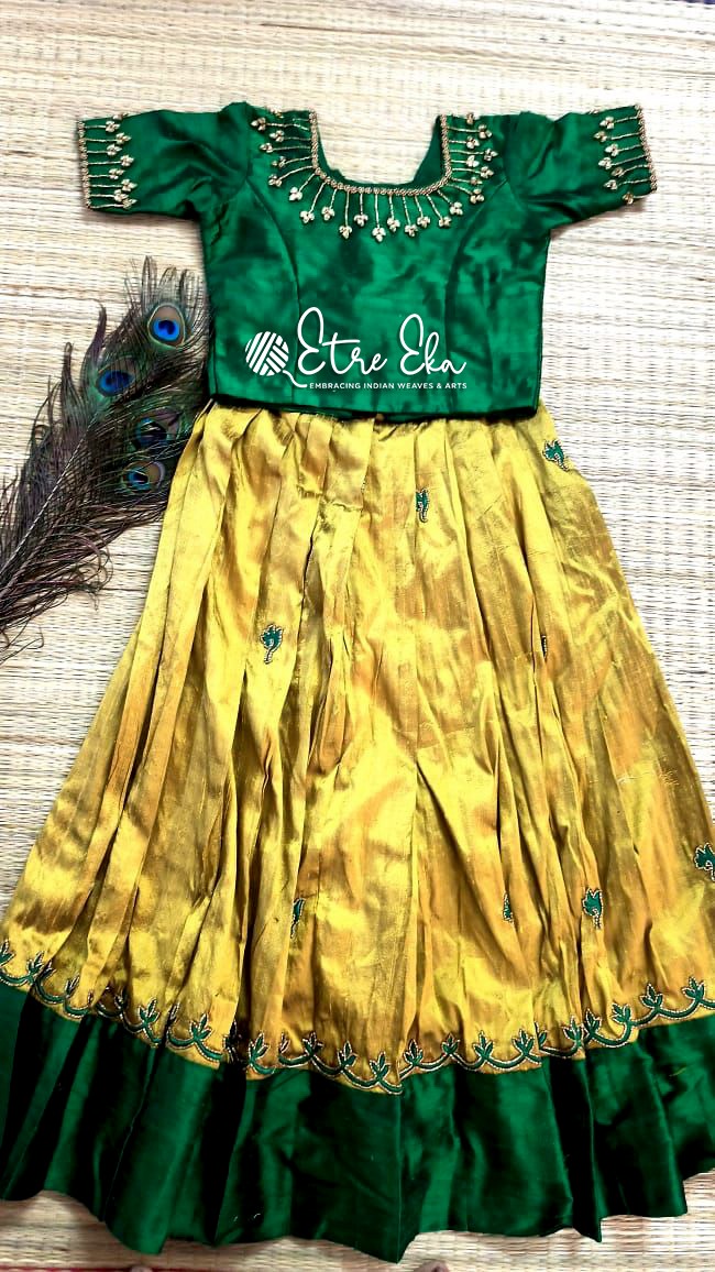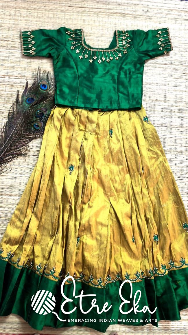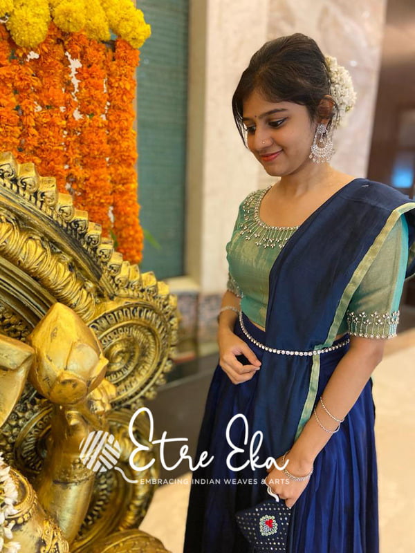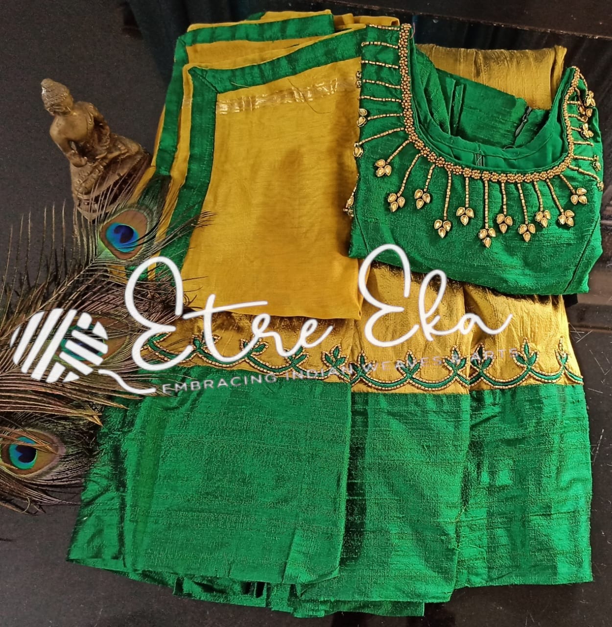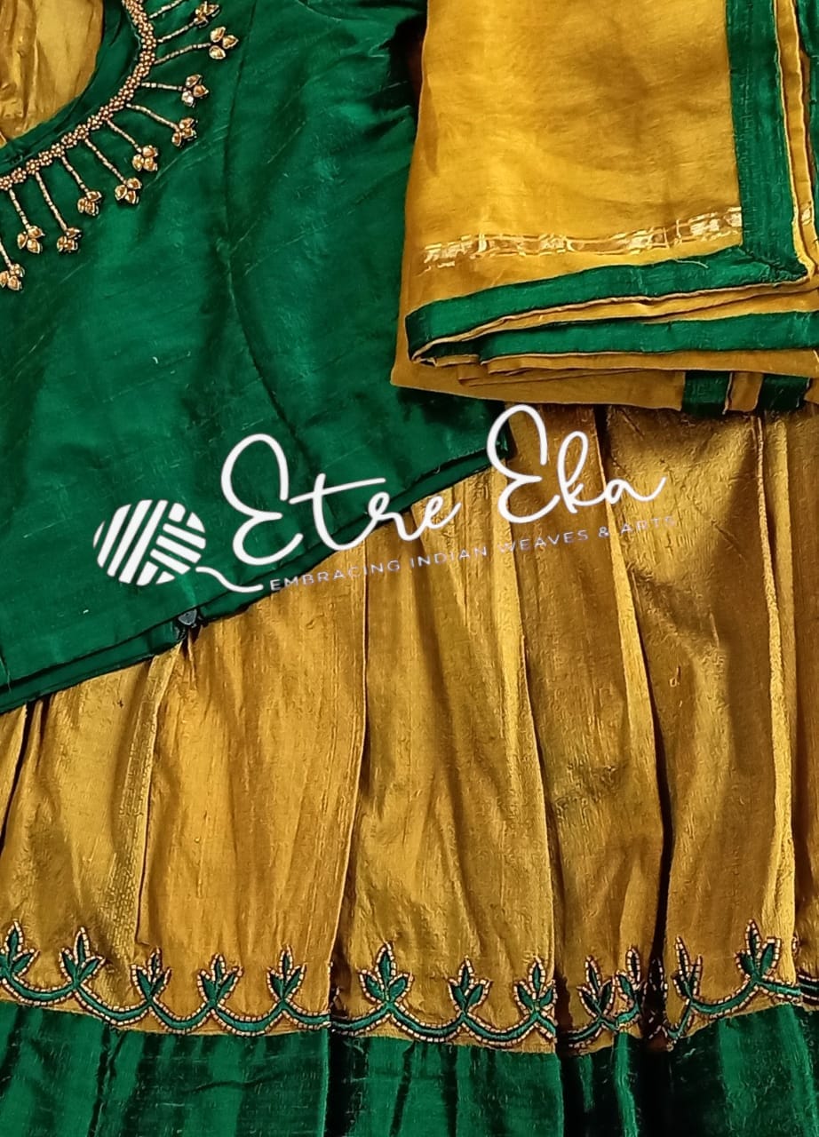 Designer Half Saree Lehenga with Stitched Silk Blouse and Davani