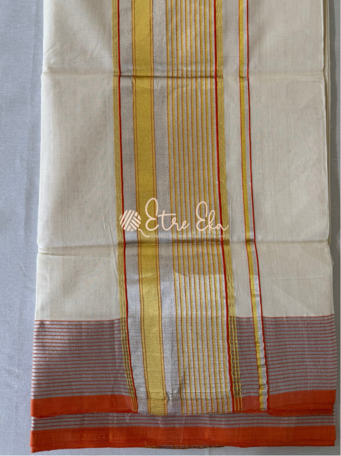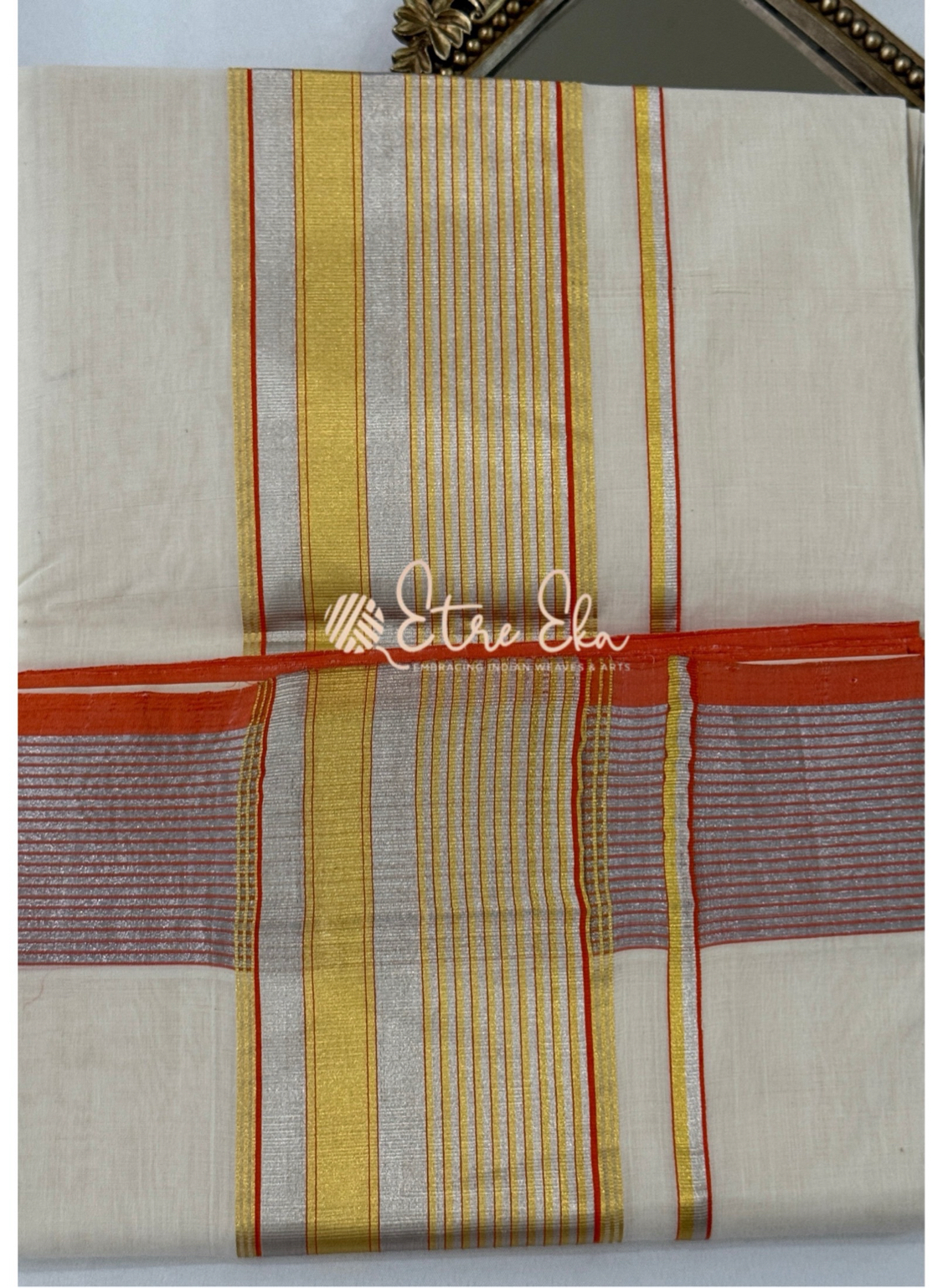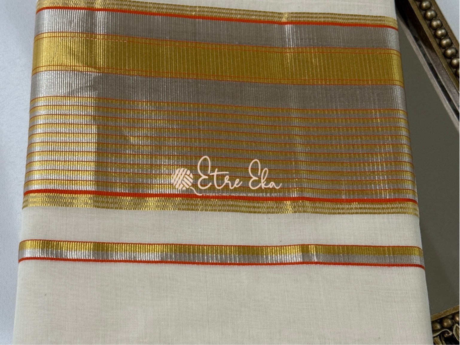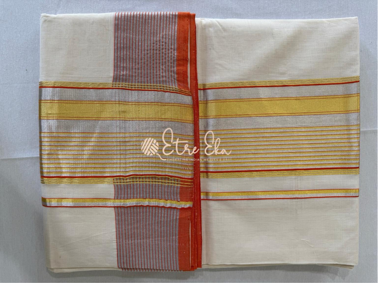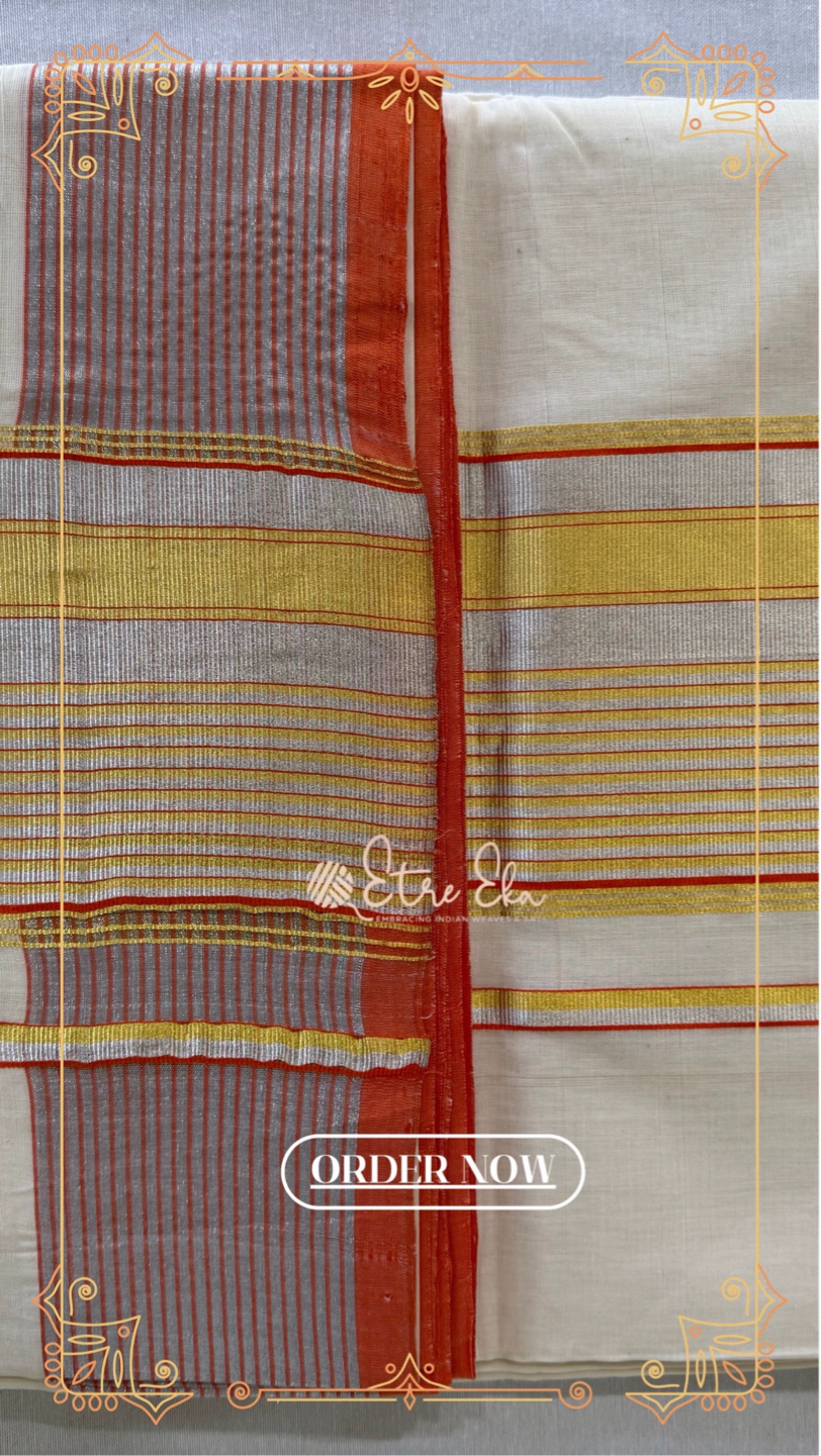 Kerala Saree from Balaramapuram With Orange Silver and Gold