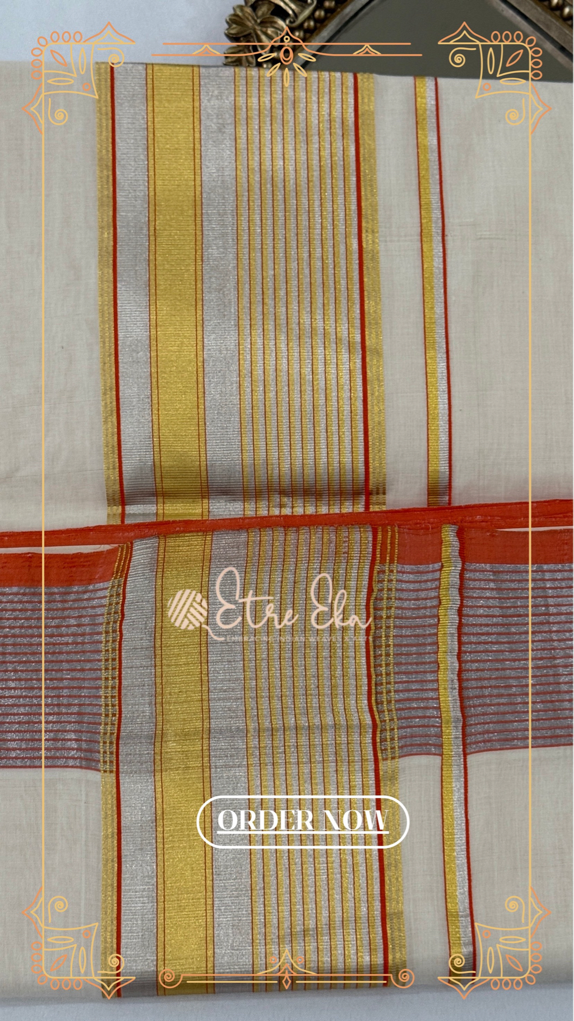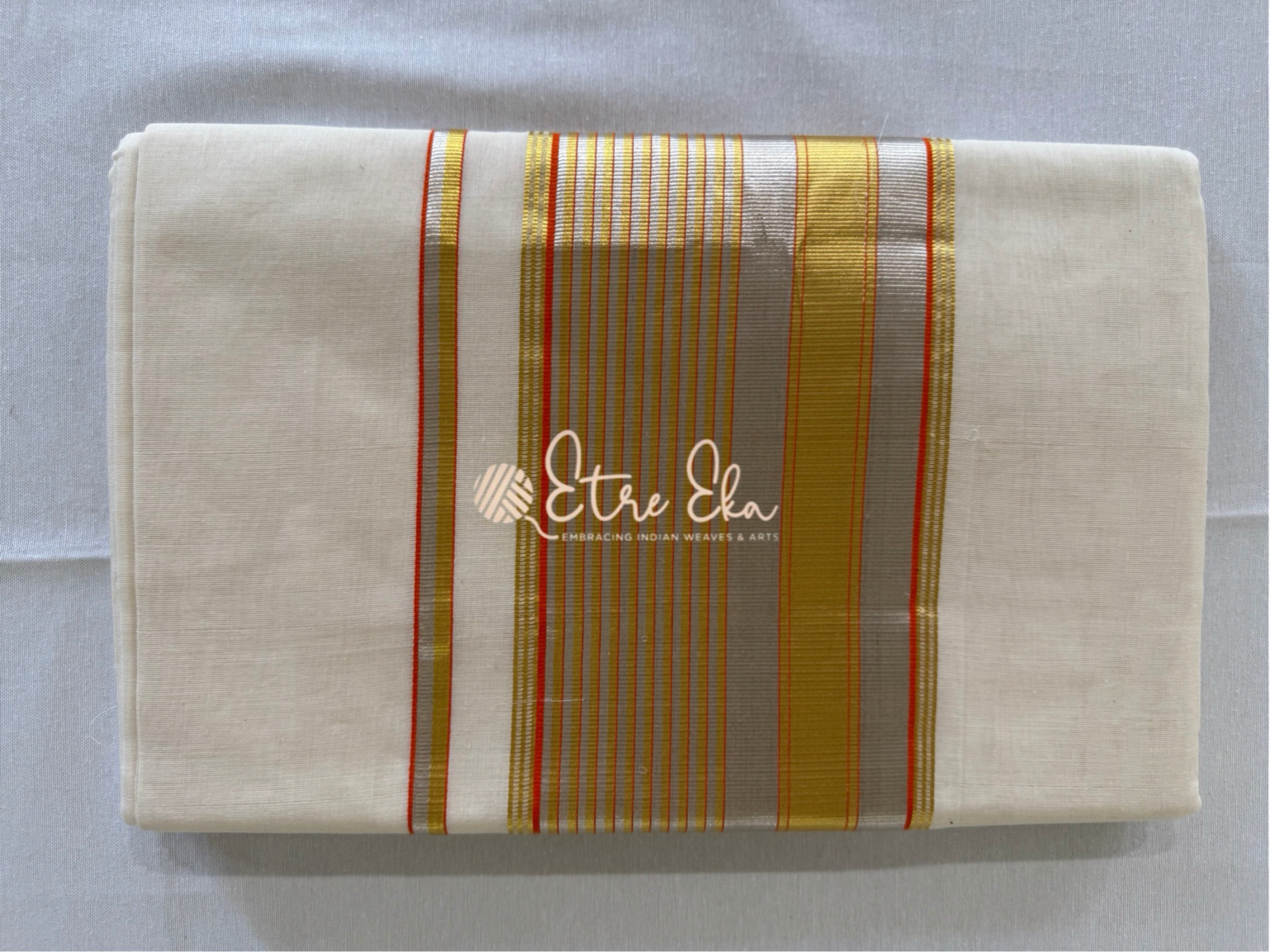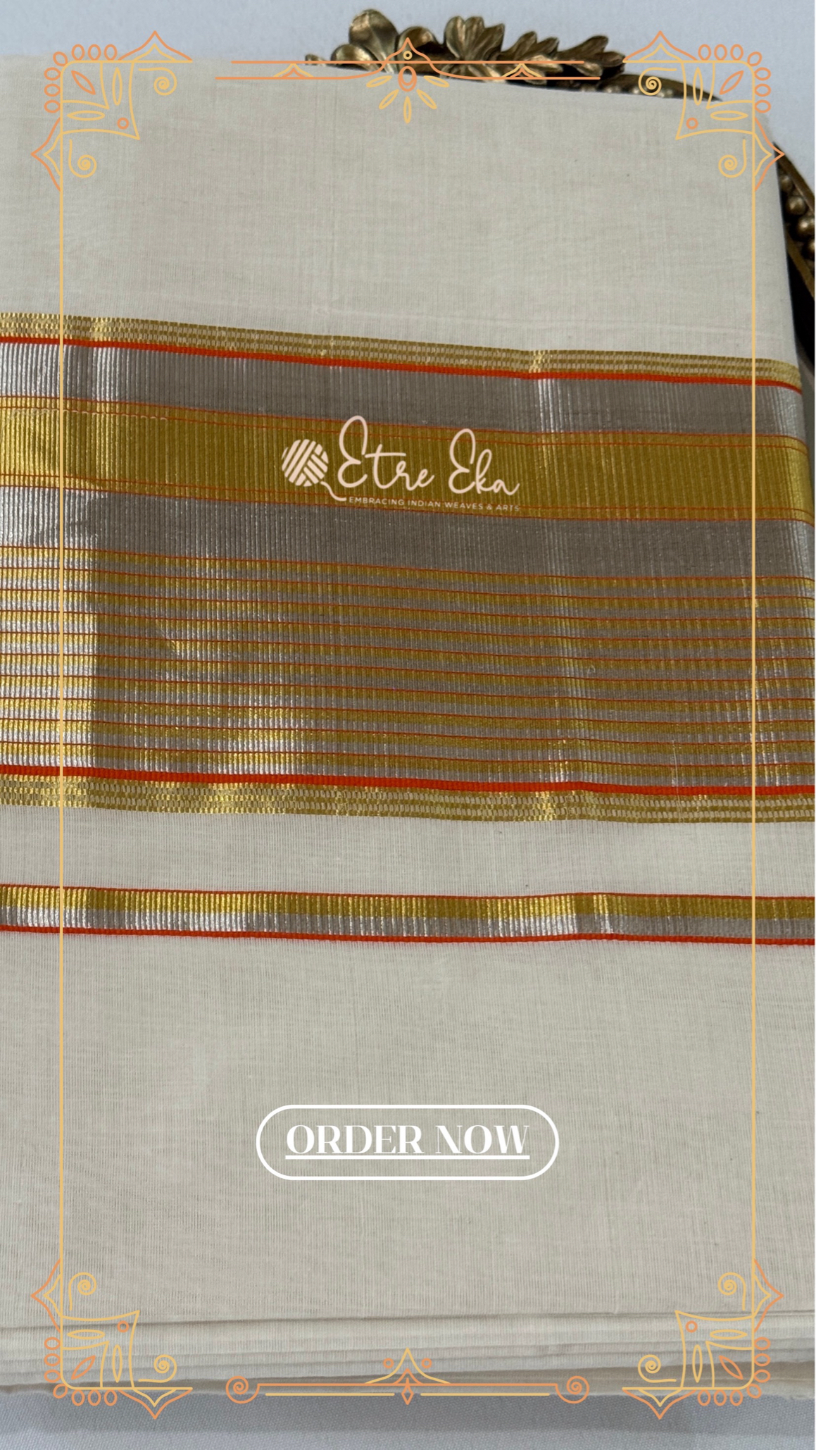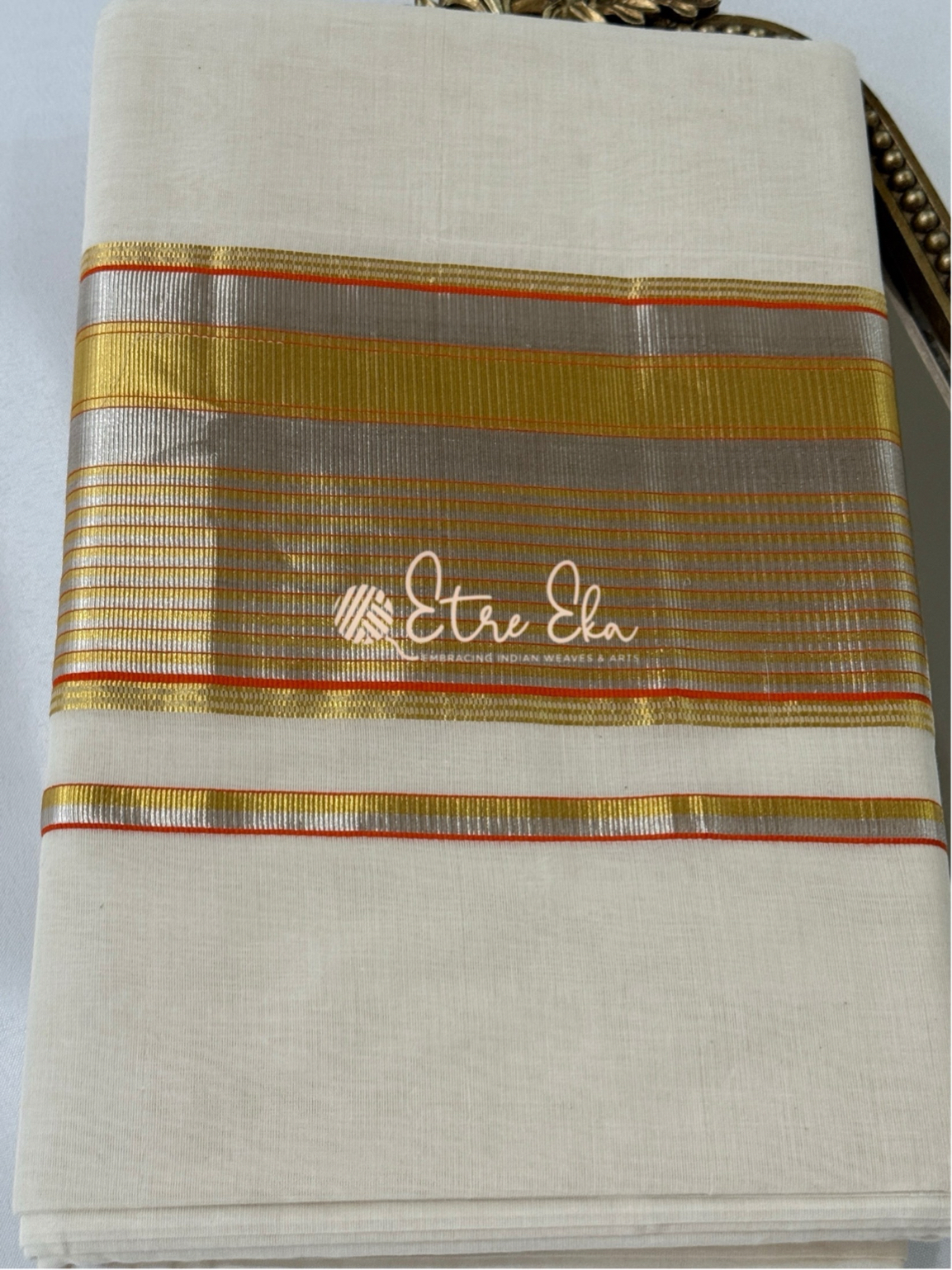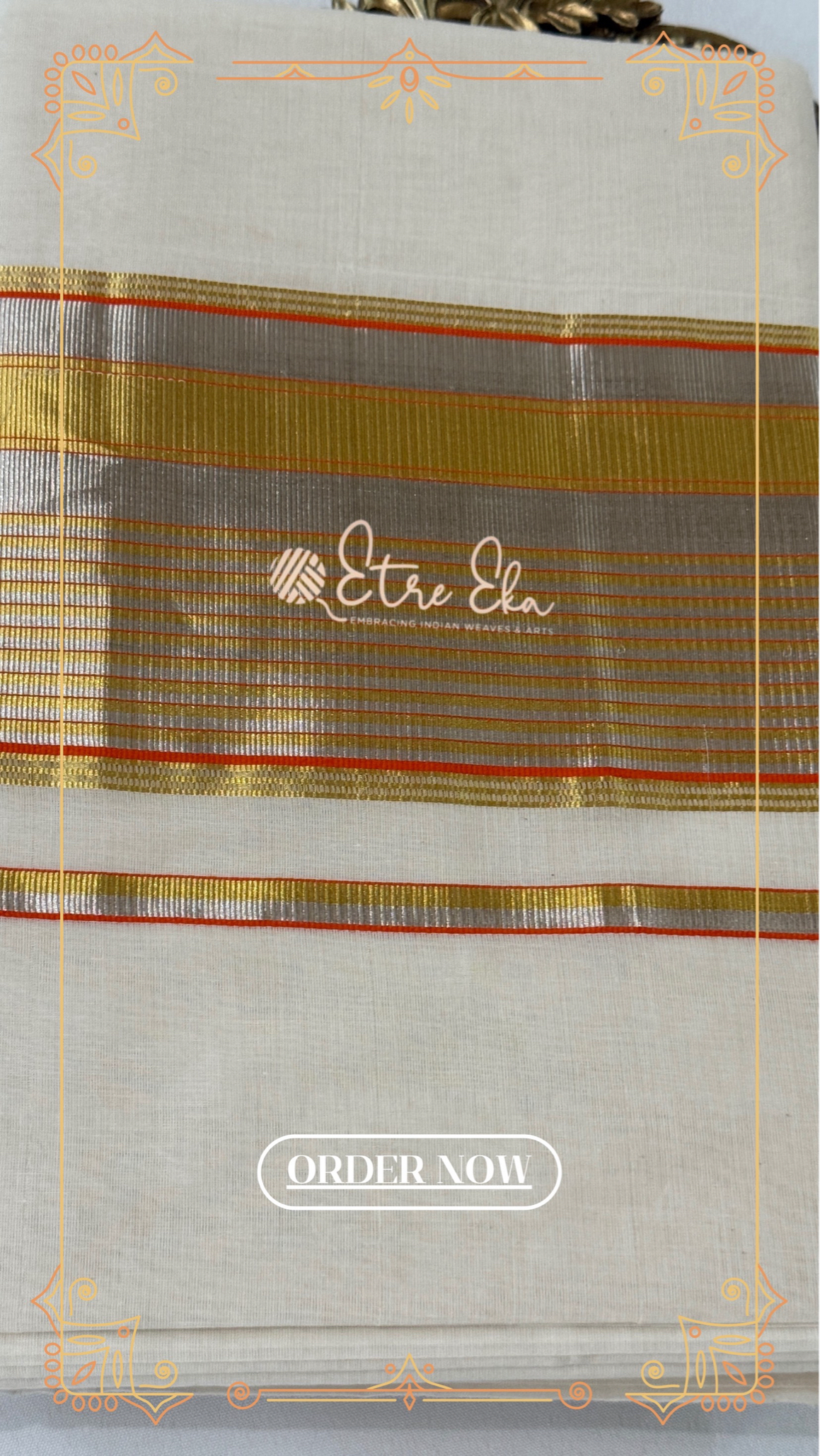 Kerala Saree from Balaramapuram With Orange Silver and Gold