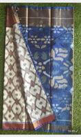 Pure Handwoven SICO IKKAT Pochampally Saree in Blue-White-Grey-8 and 2 inch Jari Borders-with unstitched Blouse