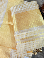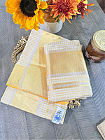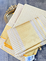 Kerala Saree from Balaramapuram - Full Body Gold Zari Micro Check Set Mundu - Gold Border and Pallu