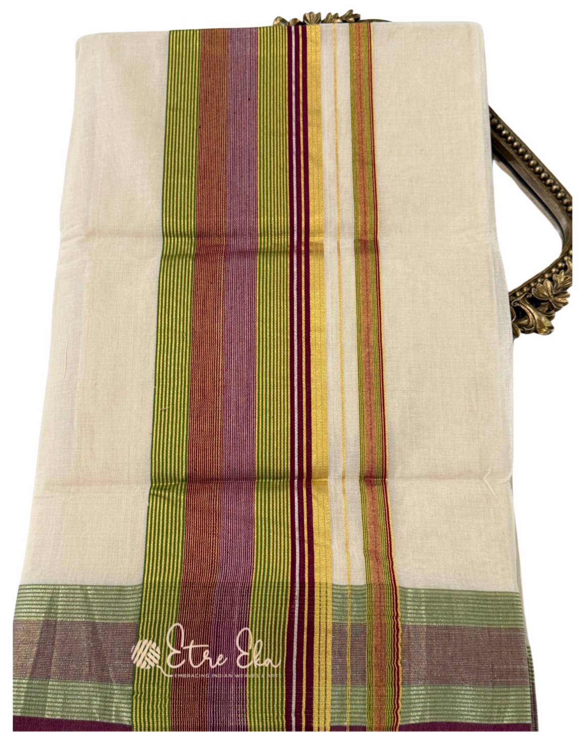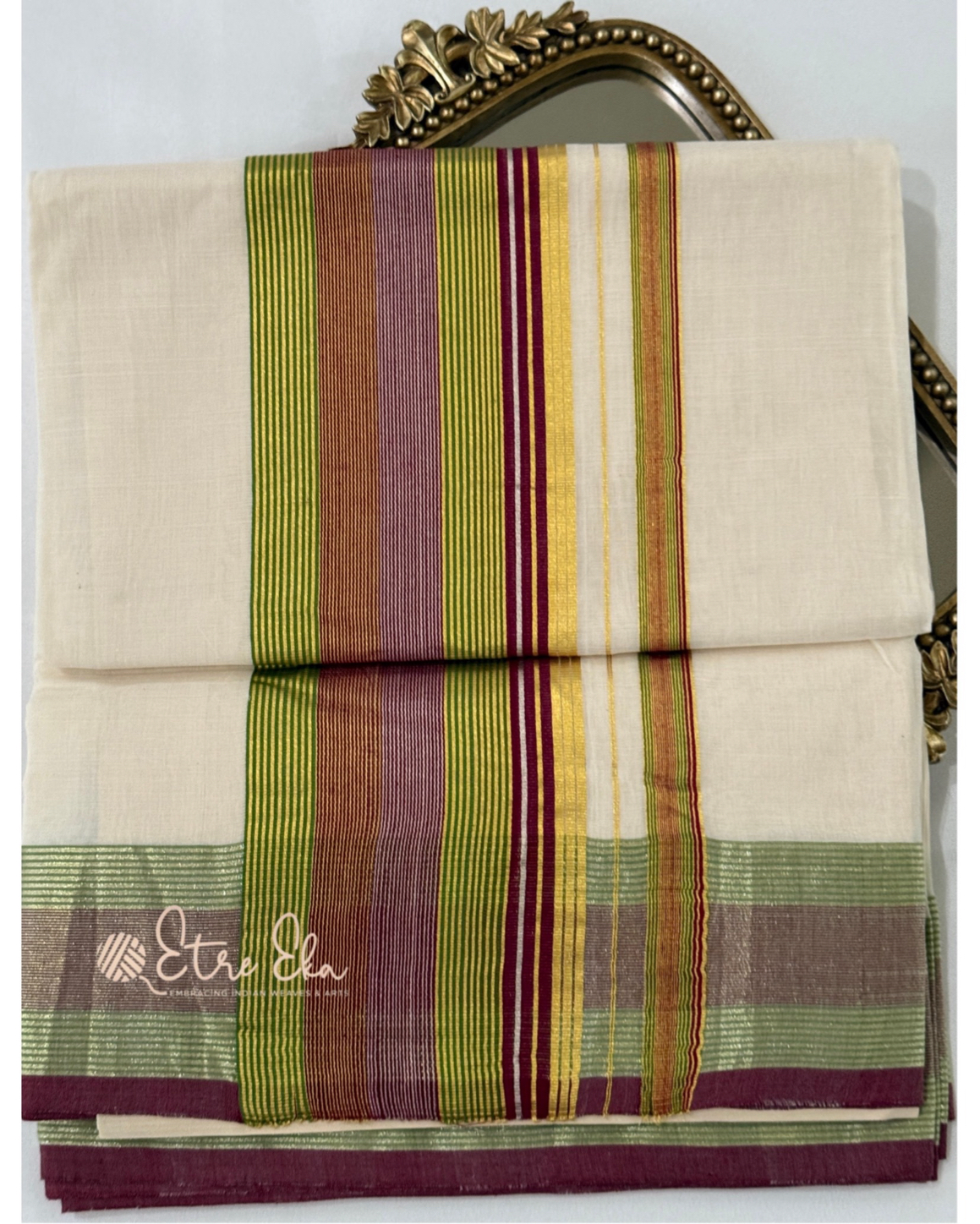 Kerala Saree from Balaramapuram With Maroon and Parrot Green