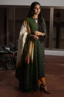 Color : Green,Yellow, and White Top and Off-White Bottom, Black and White IKKAT Dupatta