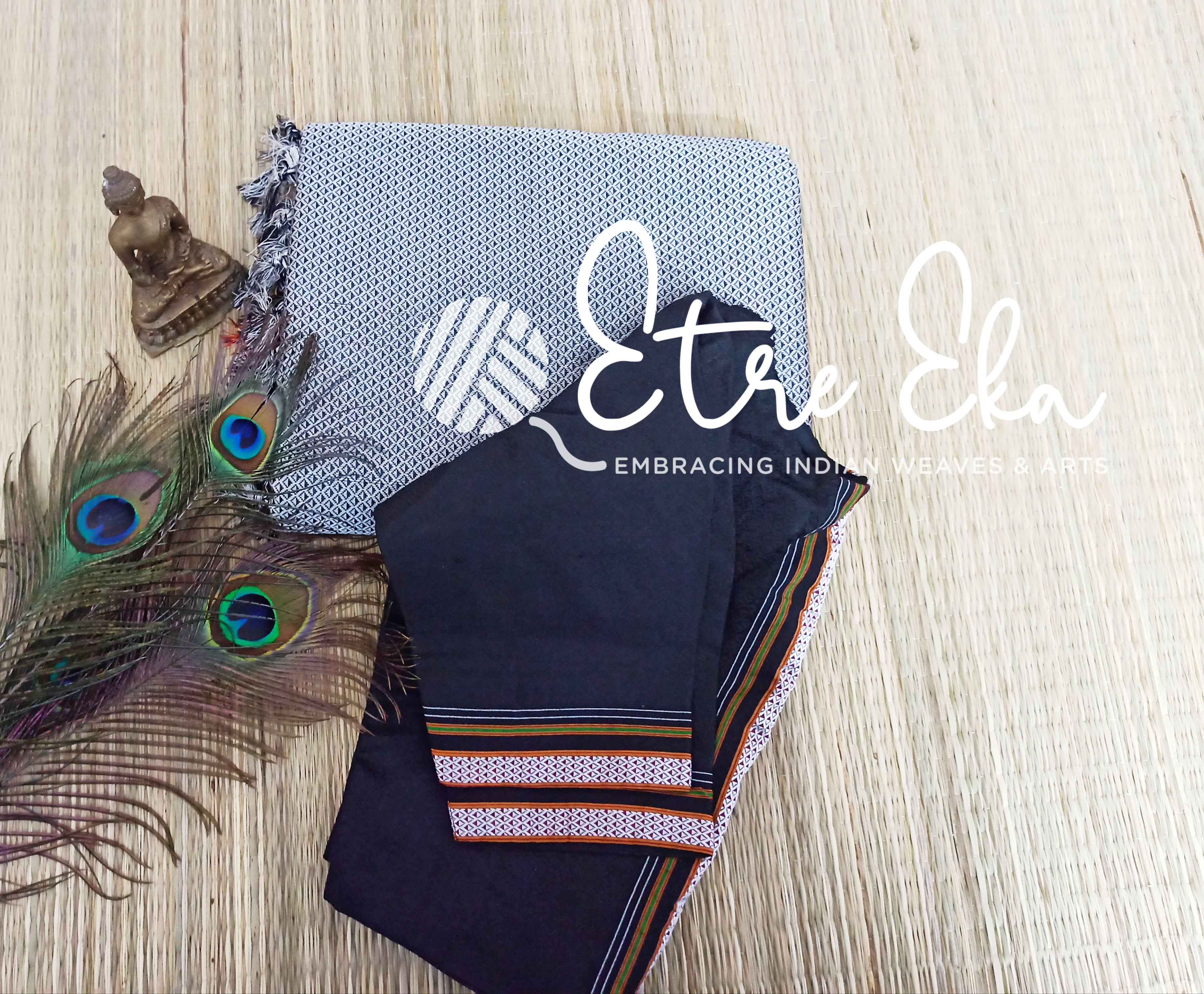 Ilkal Khun Silk Cotton Saree with Resham Border- Grey and Black with Stitched Blouse/Large