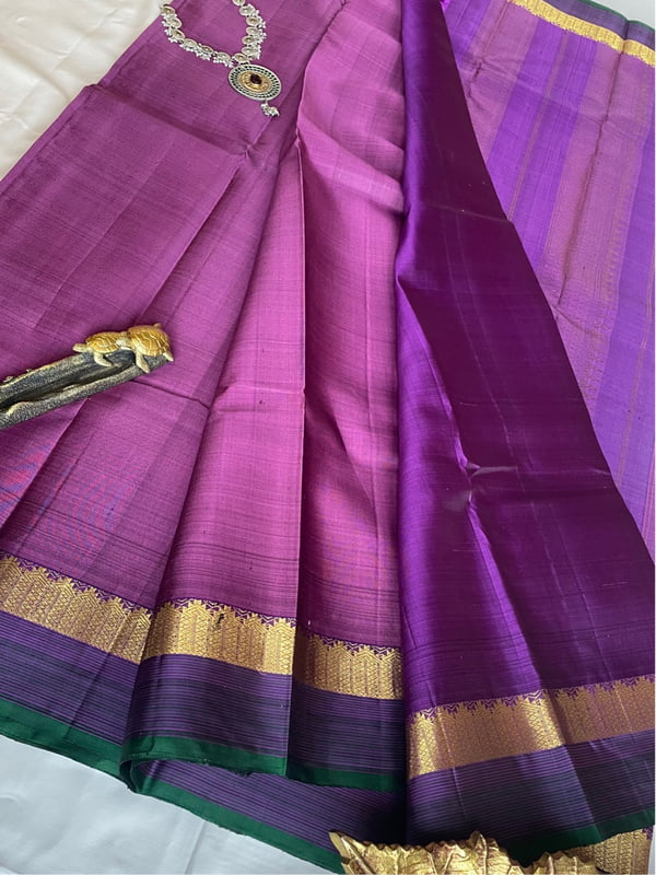 VADAMALLI PURPLE KANCHIVARAM PURE SILK SAREE WITH GOLD ZARI BORDER- UNSTITCHED BLOUSE