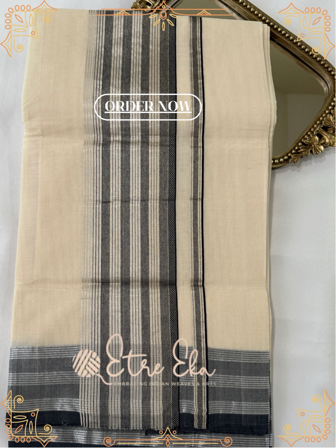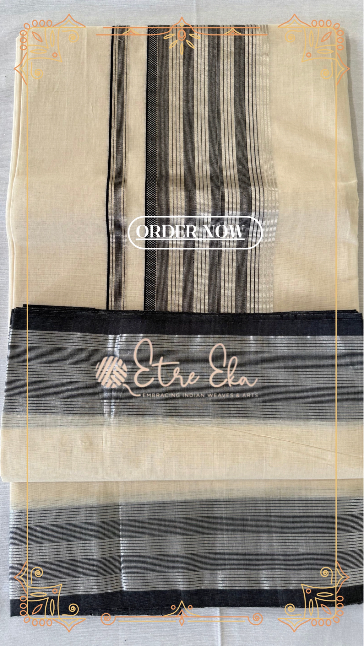 Kerala Saree from Balaramapuram With Black and Silver Lines