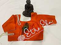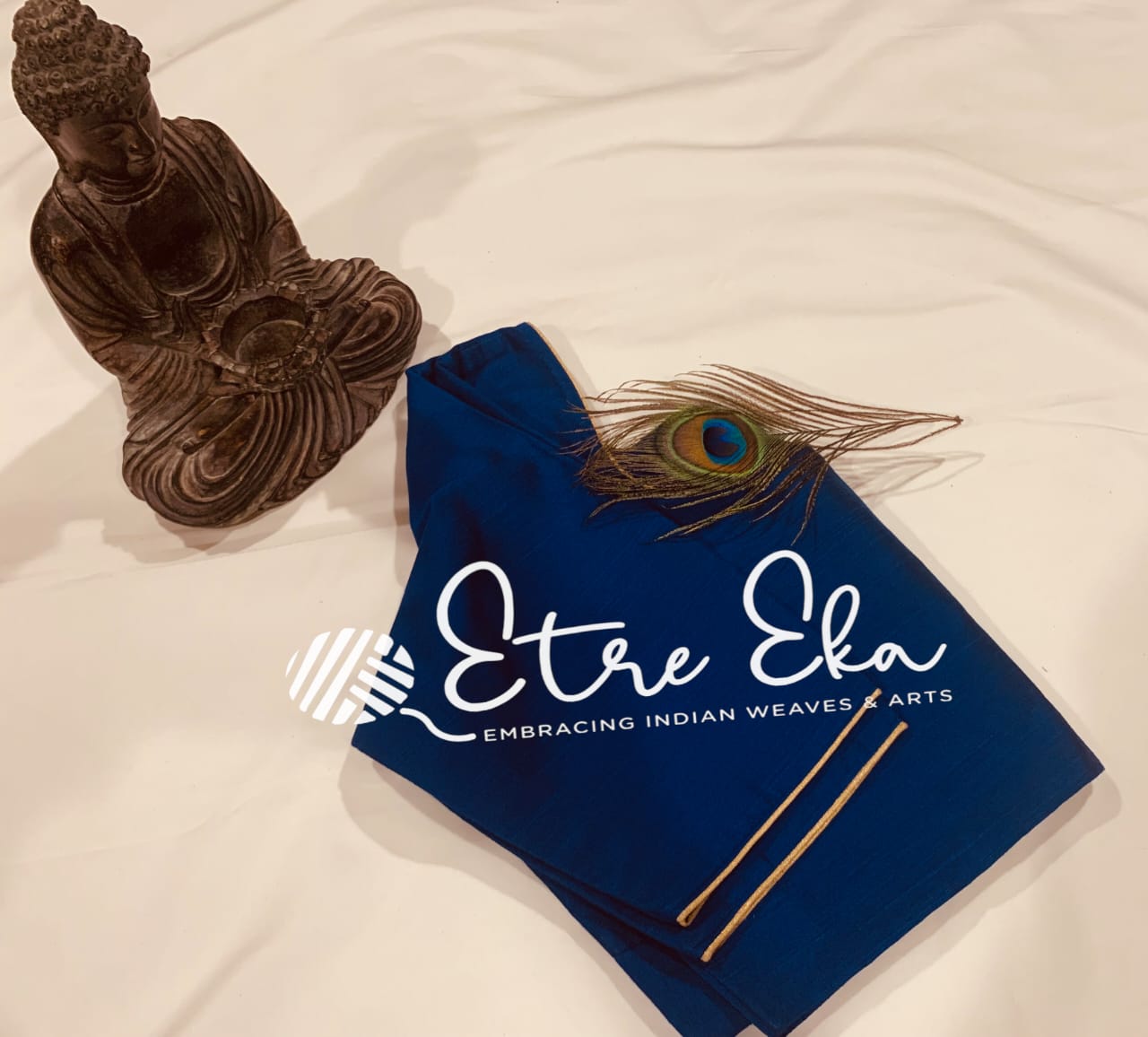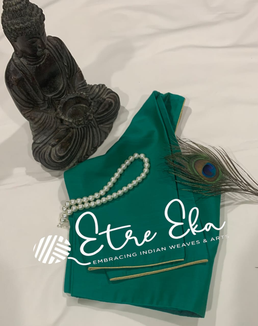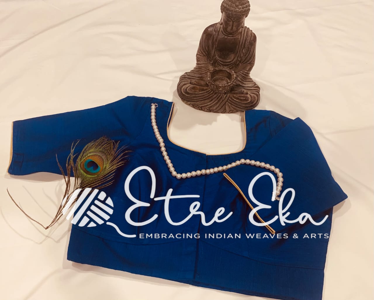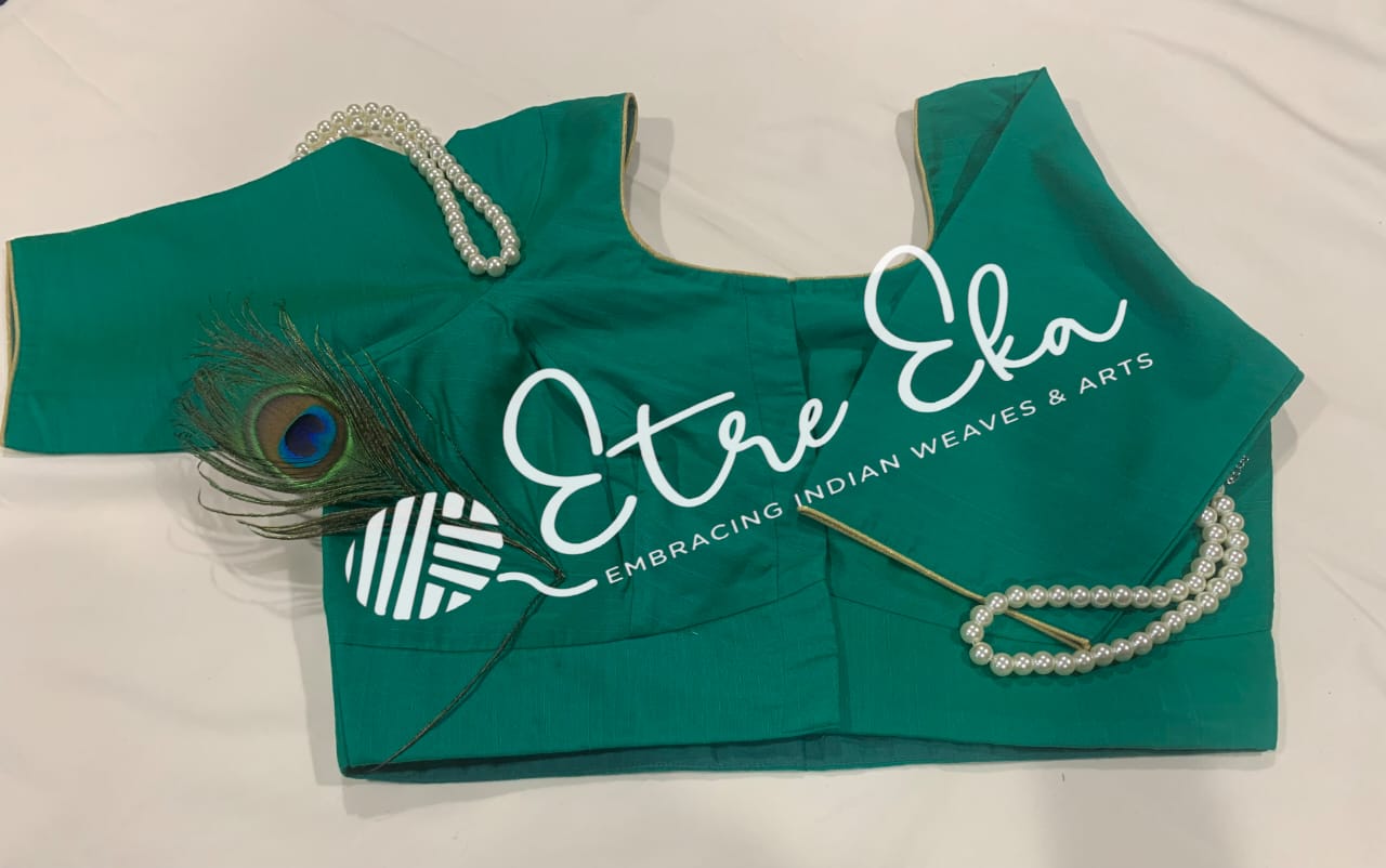 Saree Blouse. Slub Cotton Saree Blouse with Golden Piping on Neck and Sleeves-Large
