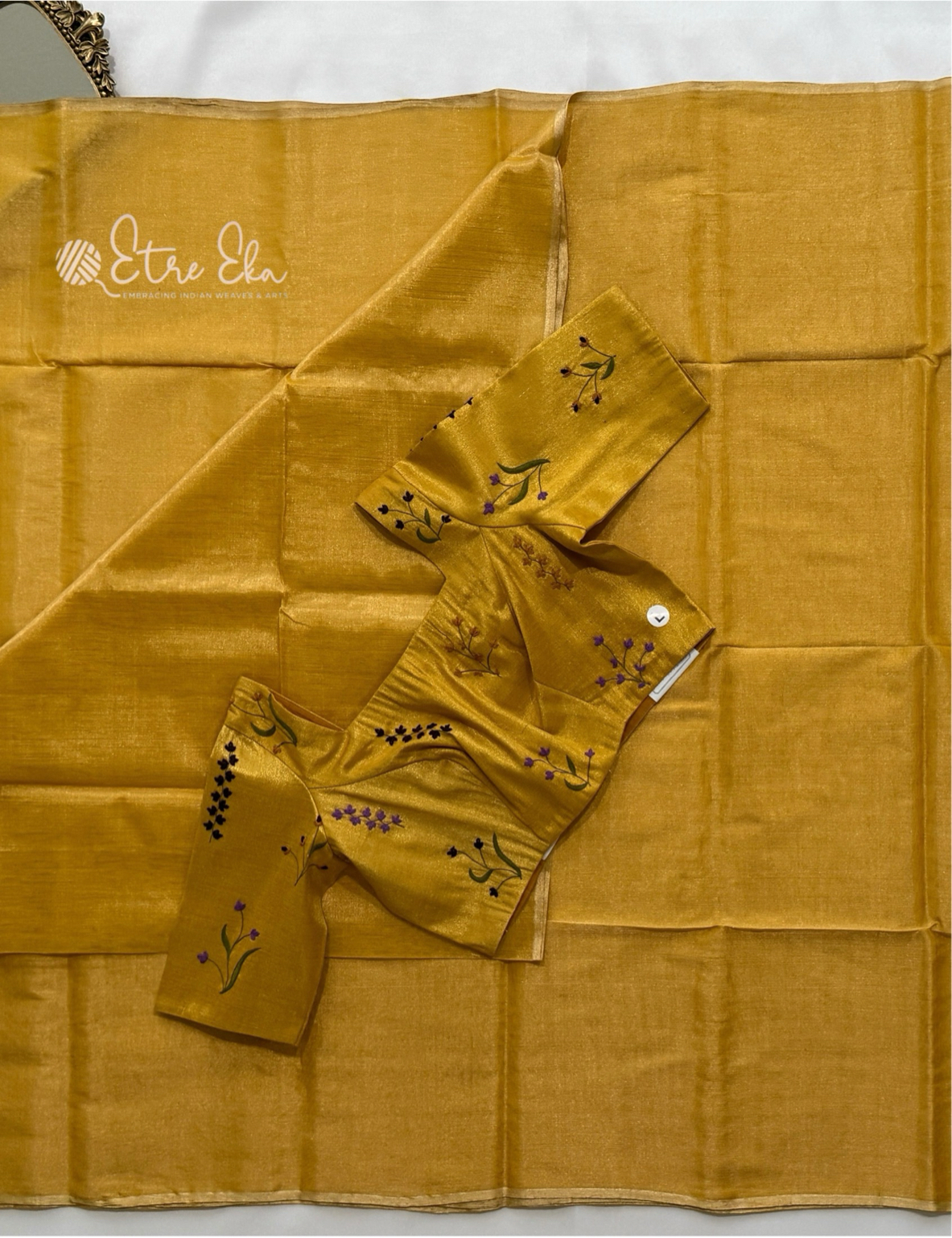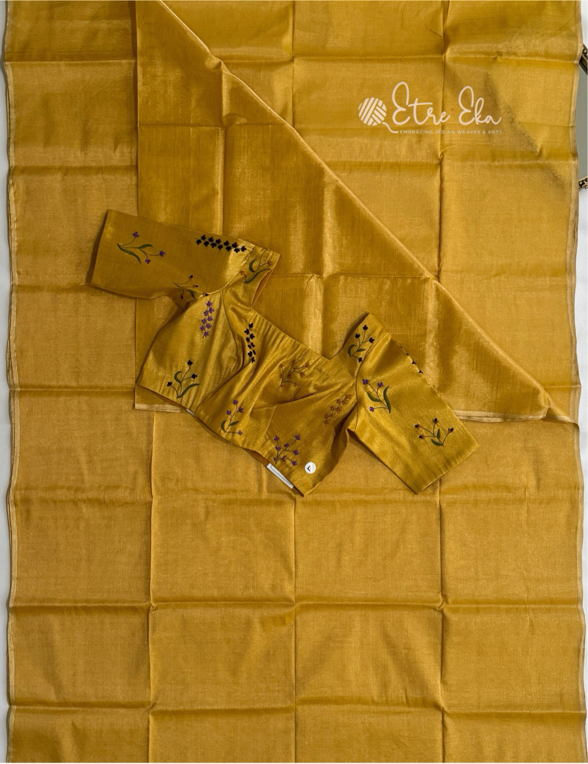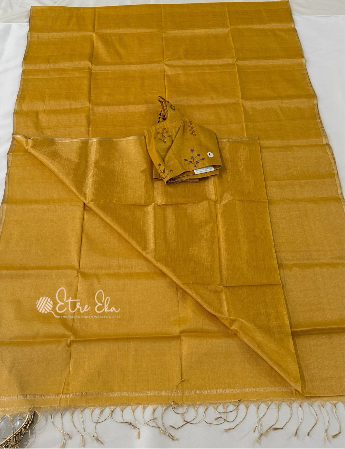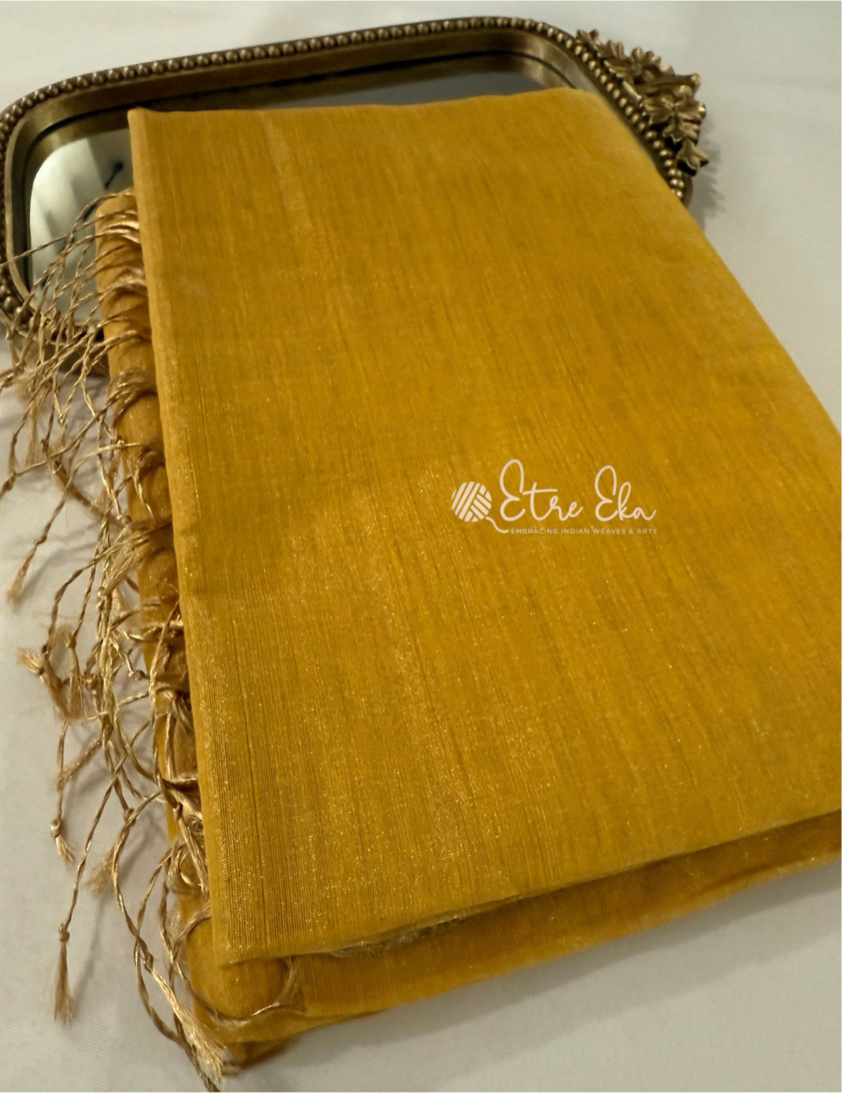 Maheswari Silk maheshwari silk -Golden Yellow Tissue Saree