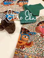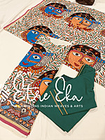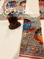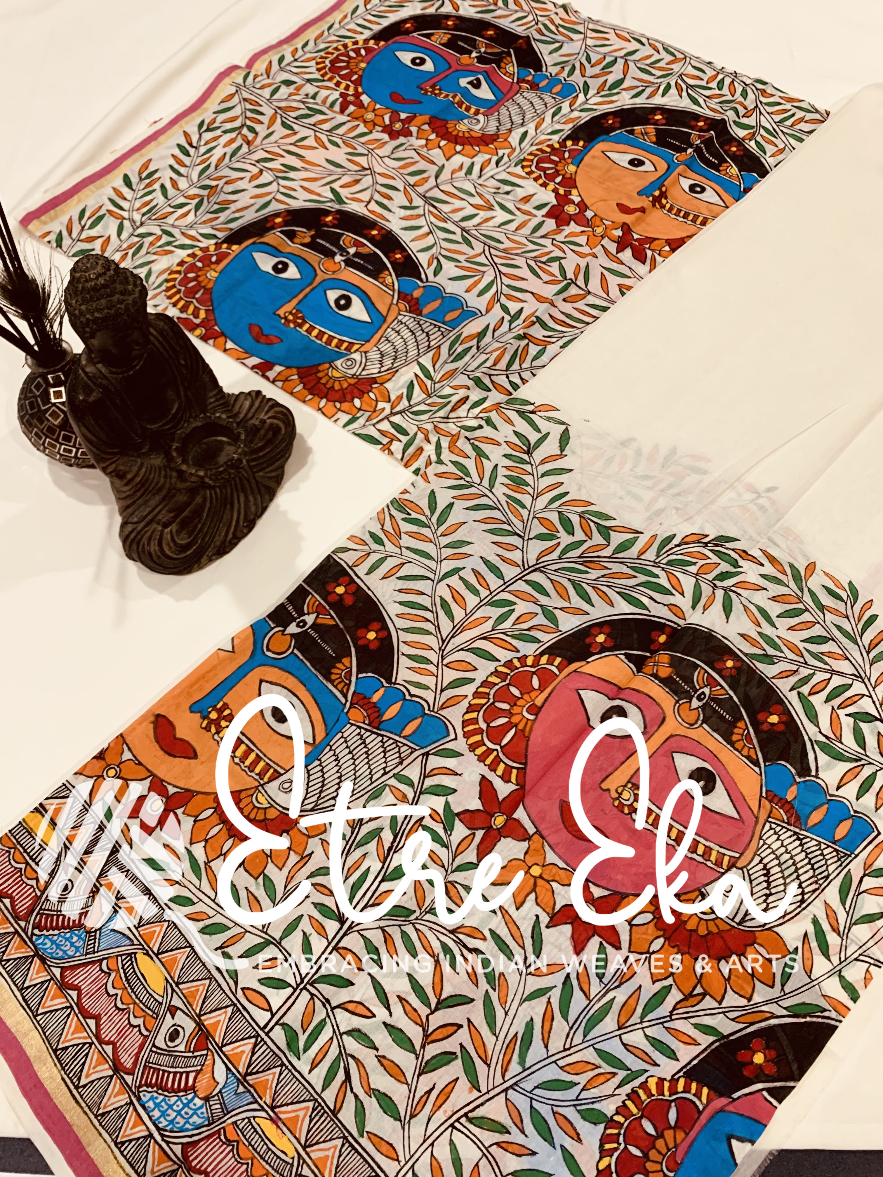 Kerala Set Saree from Kuthumpully 80x80 yarn. Pink and Gold-Madhubani Painted_Fully Painted Durga Face