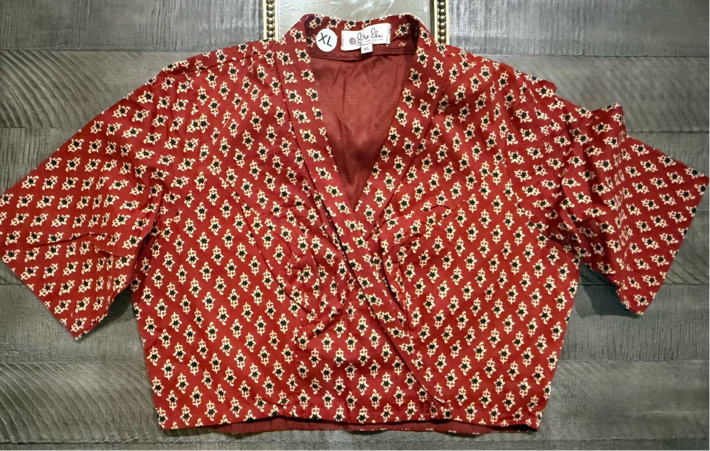 Red Ajrakh Block Print collar neck Cotton Saree Blouse